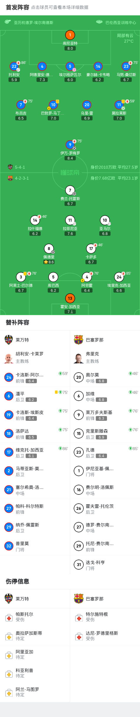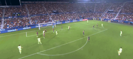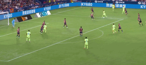 第42分钟,巴萨后防得小心了,莱万特头槌稍稍偏出